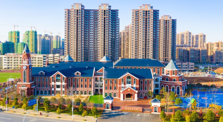 采取公辦民助,實施小班制教學模式,是一所硬件高標配,軟件高期待的現(xiàn)代化公立學校??傉嫉孛娣e486.7畝,總建筑面積14.9萬平方米,總預算約5.5億,規(guī)劃為小學、初中、高中三個校區(qū),由教學樓、綜合樓、行政樓、圖書館、學術報告廳、食堂、宿舍和風雨操場等組成,2023年7月完成高中、初中部交付使用,小學部預計2026年9月交付。