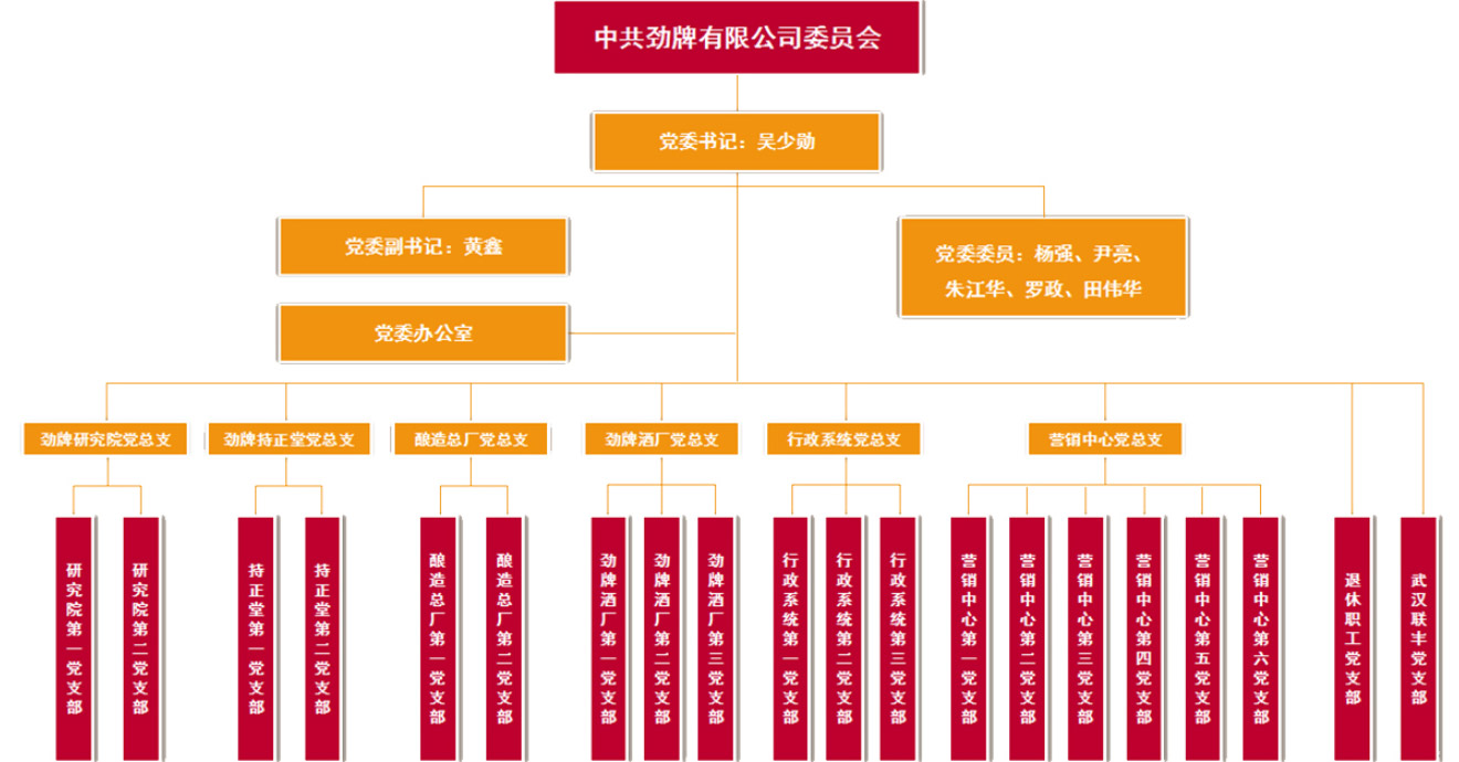 在各級(jí)黨組織的高度重視和親切的關(guān)懷下,勁牌有限公司的基層黨組織隨著企業(yè)的穩(wěn)健發(fā)展而不斷壯大,1996年升格為黨委,2013年成立紀(jì)委;同時(shí)建立健全了工會(huì)、共青團(tuán)、婦聯(lián)組織,配備了專兼職人員,形成了黨建工作齊抓共管的工作格局。目前,公司黨委下轄6個(gè)黨總支,共設(shè)20個(gè)黨支部。