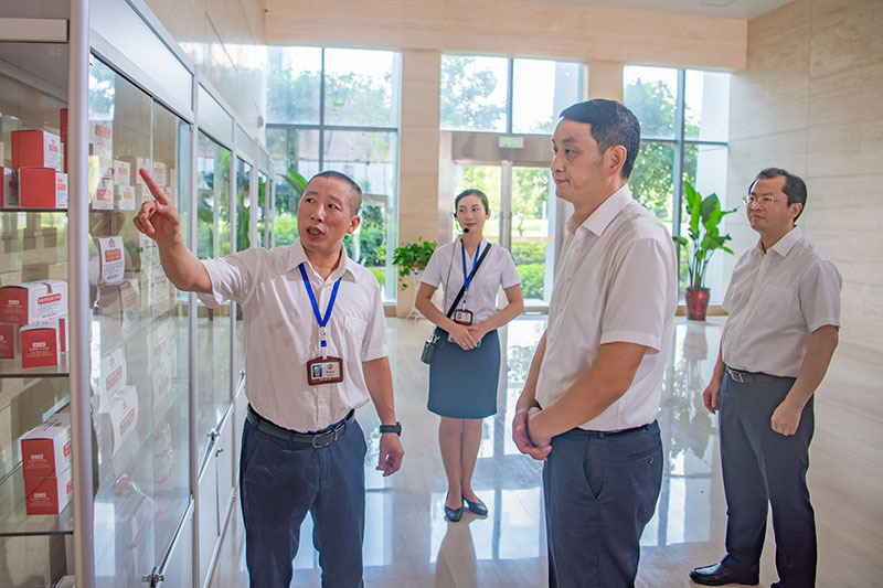 劉海軍書記先后參觀了勁牌持正堂藥業(yè)展廳、勁牌智慧藥房、中藥提取中心。就勁牌中藥材選育、數(shù)字化炮制流程的運(yùn)用、中藥數(shù)字化提取及中藥顆粒制劑等相關(guān)內(nèi)容進(jìn)行深入了解,并現(xiàn)場(chǎng)體驗(yàn)了智慧藥房的數(shù)字化診療。 劉海軍書記對(duì)勁牌在中醫(yī)藥領(lǐng)域的技術(shù)創(chuàng)新與數(shù)字信息化改革給予了高度評(píng)價(jià),并對(duì)勁牌積極抗疫,努力弘揚(yáng)中醫(yī)藥文化,心系國(guó)民健康的責(zé)任意識(shí)表達(dá)了贊賞。 劉海軍書記指出,勁牌持正堂通過(guò)建立數(shù)字化制劑工藝與流程,有效改善了中藥抓藥、服藥的不便,對(duì)中醫(yī)藥產(chǎn)業(yè)的發(fā)展起到了推動(dòng)作用。希望勁牌繼續(xù)發(fā)揚(yáng)創(chuàng)新精神,傳承責(zé)任意識(shí),為湖北省中醫(yī)藥產(chǎn)業(yè)發(fā)展貢獻(xiàn)力量。